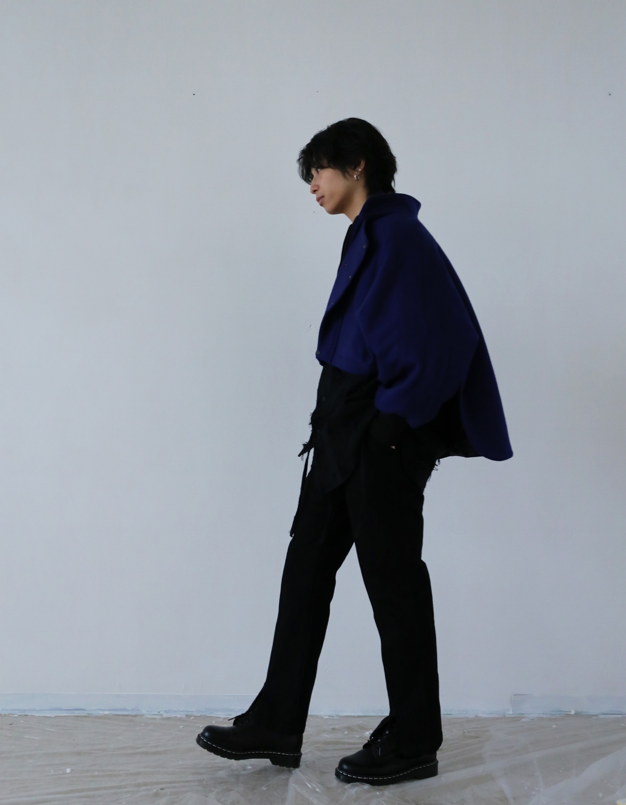 ポンチョのようなシルエットの変形アウター。アームホールがフロント着丈まで広がっており、かなりゆとりのある服の上からでも着ることができます。キルティングで中綿が入っているため薄手ながらも寒い時期にも着られます。一枚でも、アウターに重ねるライトアウターとしてもレイヤードの楽しめる一着となっています。
