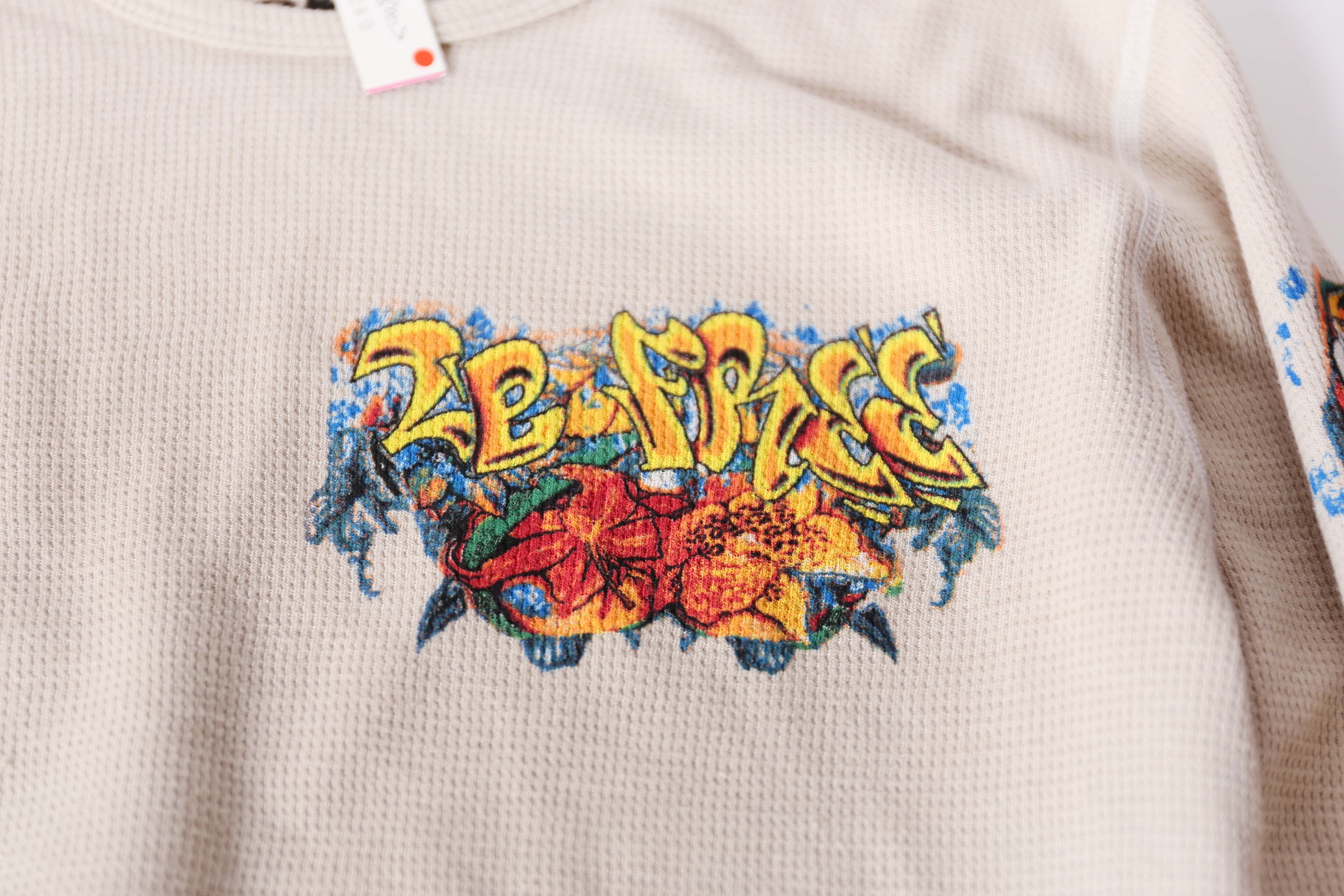 肌触りのいいサーマル生地LT。サイズどちらもインナーとして使えるサイジングで、レイヤードを楽しめる一枚です。スリーブ部分にもデザインがあしらわれていますのでベストやジレ、ヘビーウェイトのTシャツと重ねるコーディネートもおすすめです。