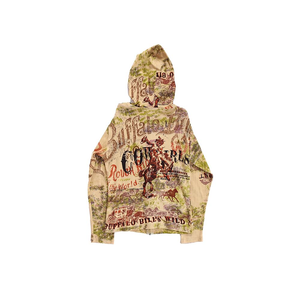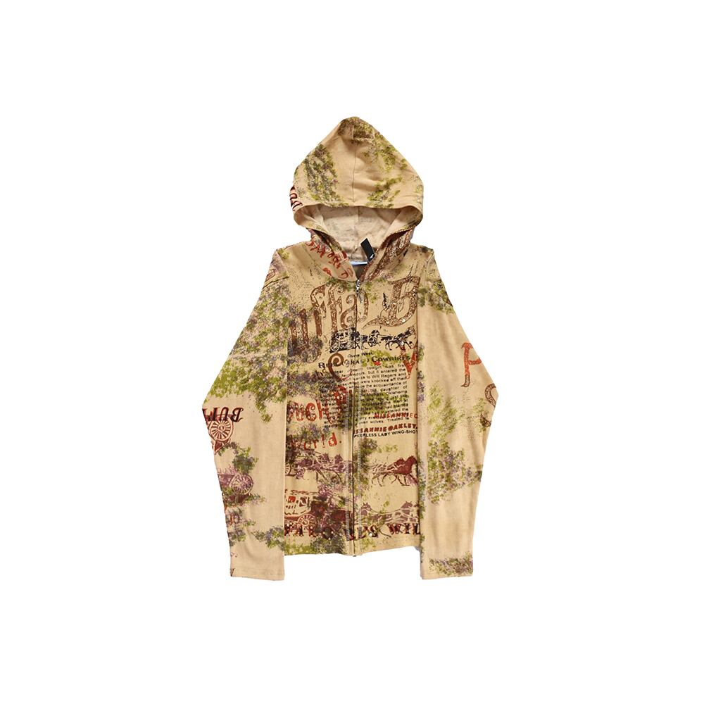 生地に縫われたスパンコールも、デザイン性のある生地の上にあることで馴染み、見る角度や動きによって見える計算されたパーカーです。