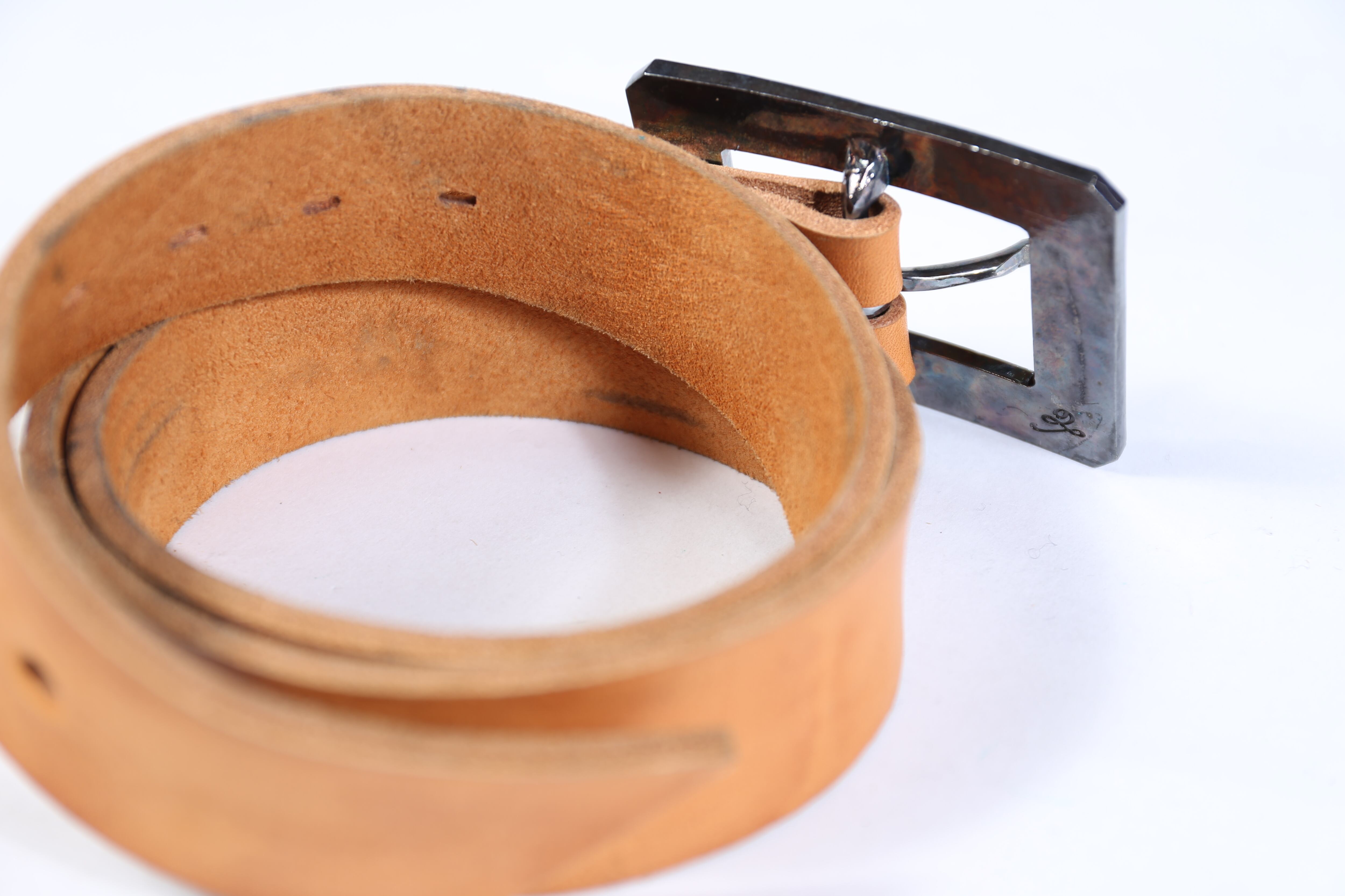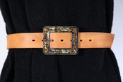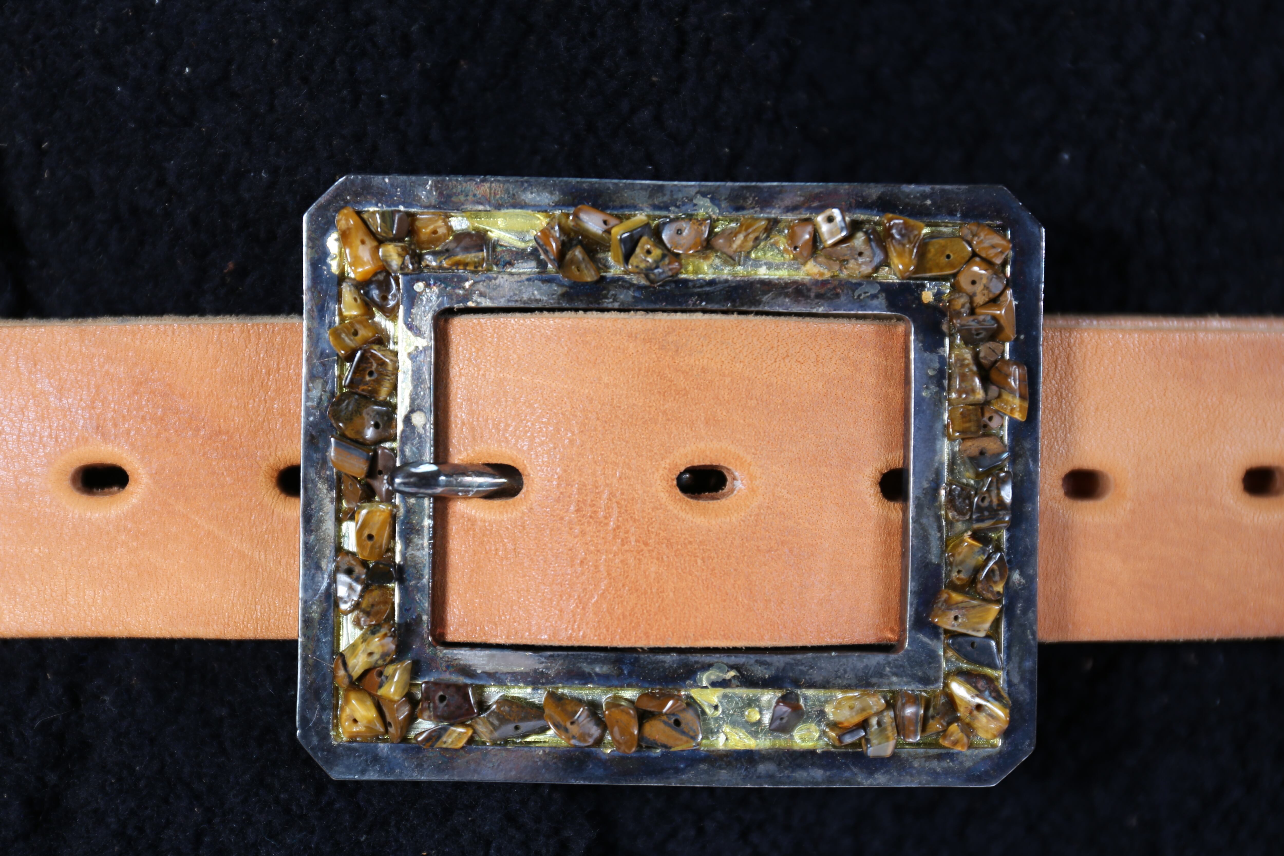 バックルにタオガーアイの天然石が装飾されたバックルベルト。所々、剥がれているところがあり、セール価格となっております。別のパーツで装飾しても良いですし、そのままのデザインでも◎