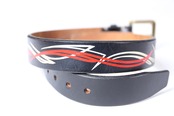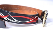 大胆なペイントが施されたデザインベルト。黒の中に、赤と白のペイントデザインが生える機能性とデザイン性を楽しめる一点です。