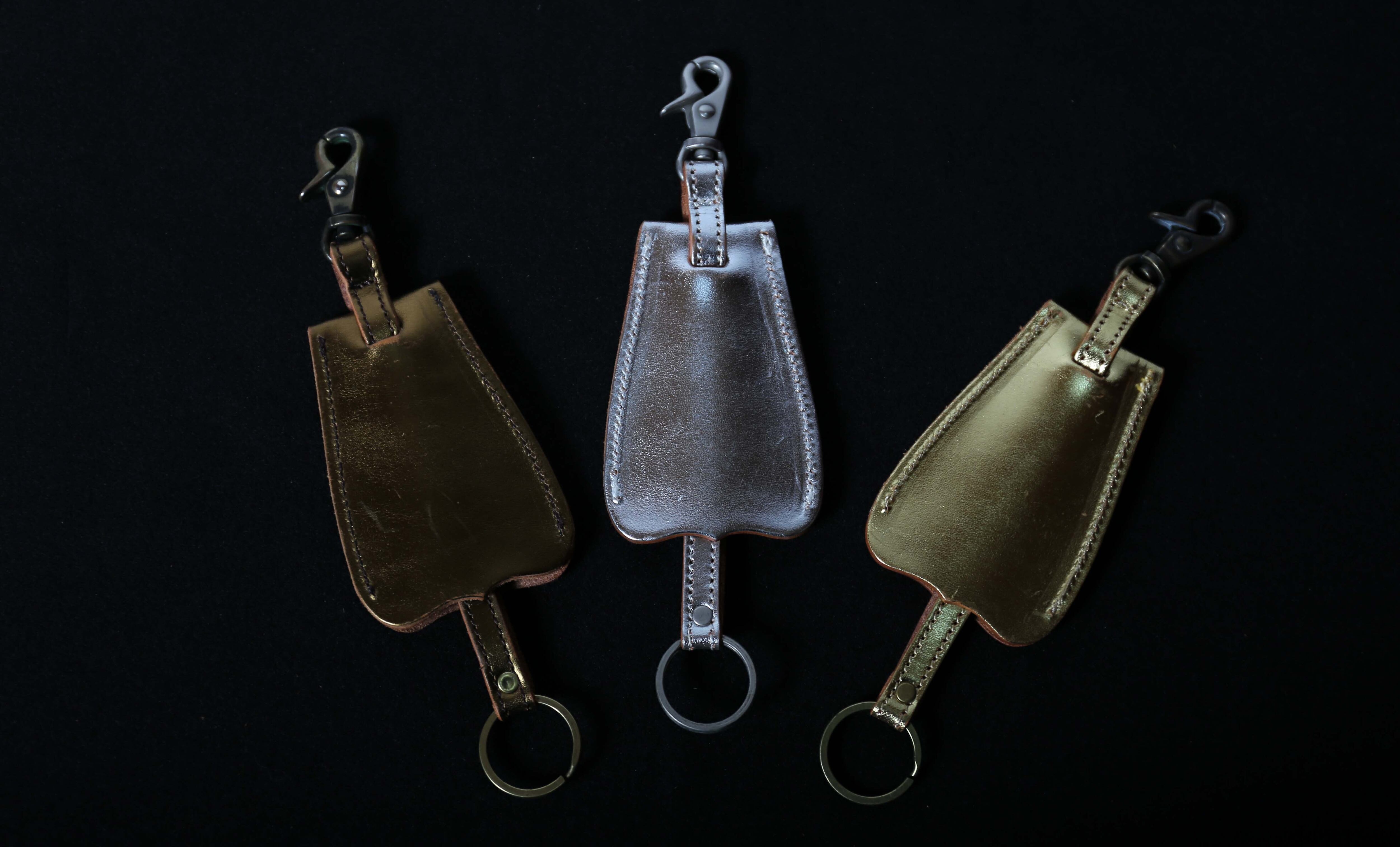 キーホルダーで、マルカンの部分に鍵を通し上から引っ張るとベルの部分に鍵が隠れる仕様になっています。カラーは3色からお選びください。使っていくうちに、皮特有の光沢ができきて、カラーの光沢が馴染み、また違った風合いを出すことができます。