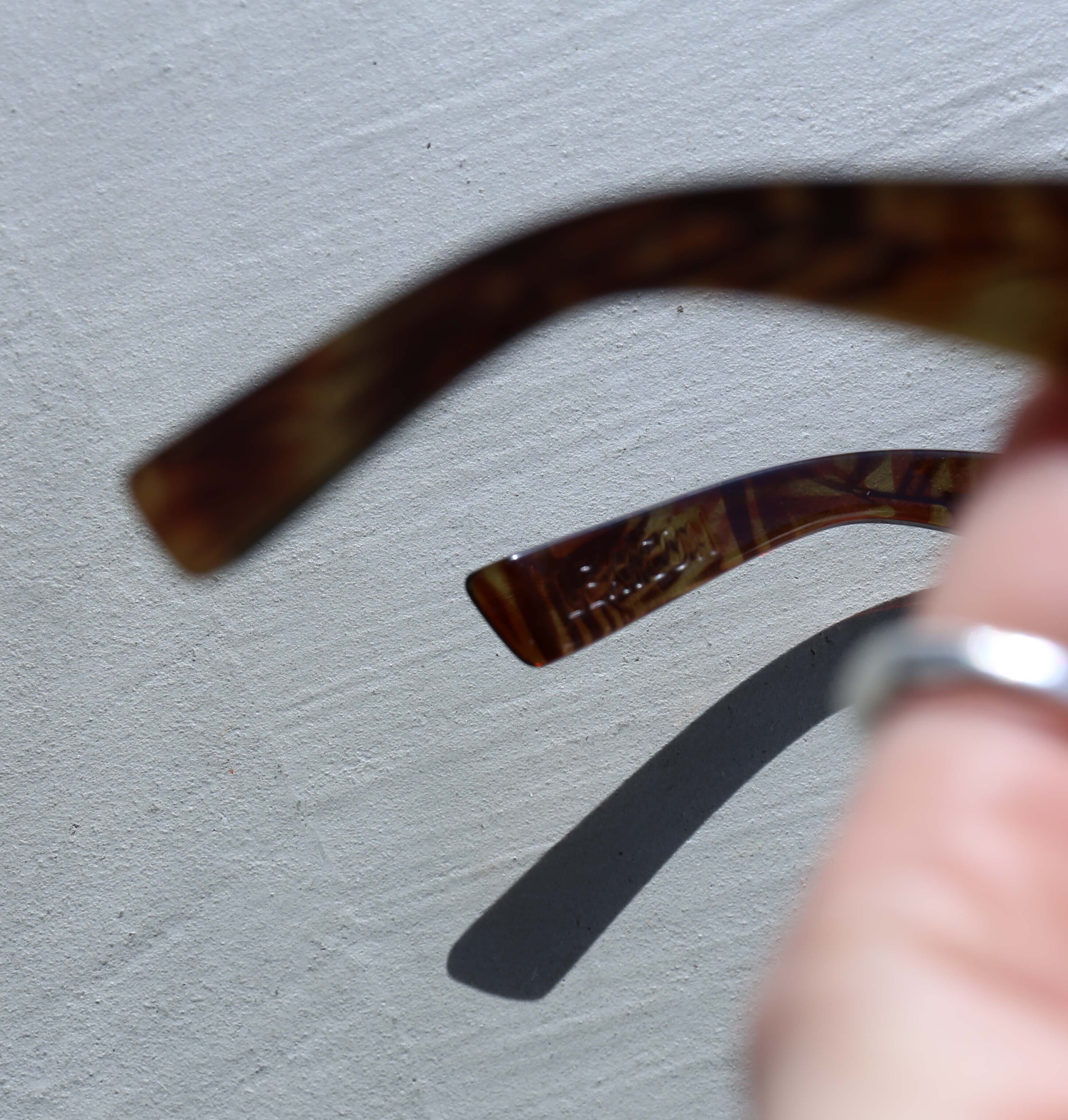 グリーンとブラウンの絶妙なカラーリングの美しいサングラス。テンプル部分には南国の植物デザインが施されており、リゾート感溢れるサングラスとなっています。テンプル部分も幅が広いので、しっかり顔をホールドしてずれにくいです。サイドから見てもメタリックなロゴが付いており、どこから見てもポイントが見えるこだわりの一品です。