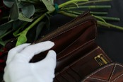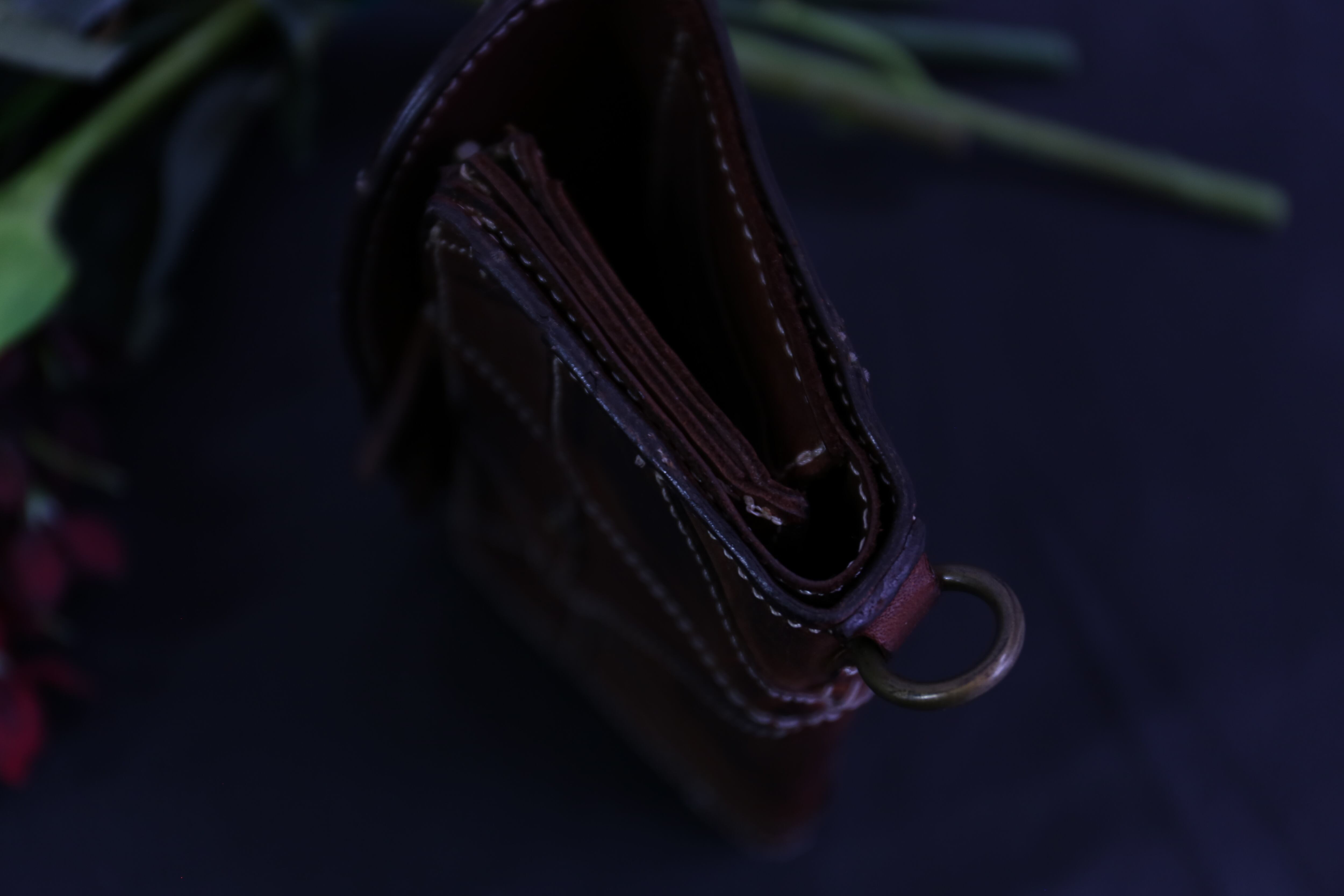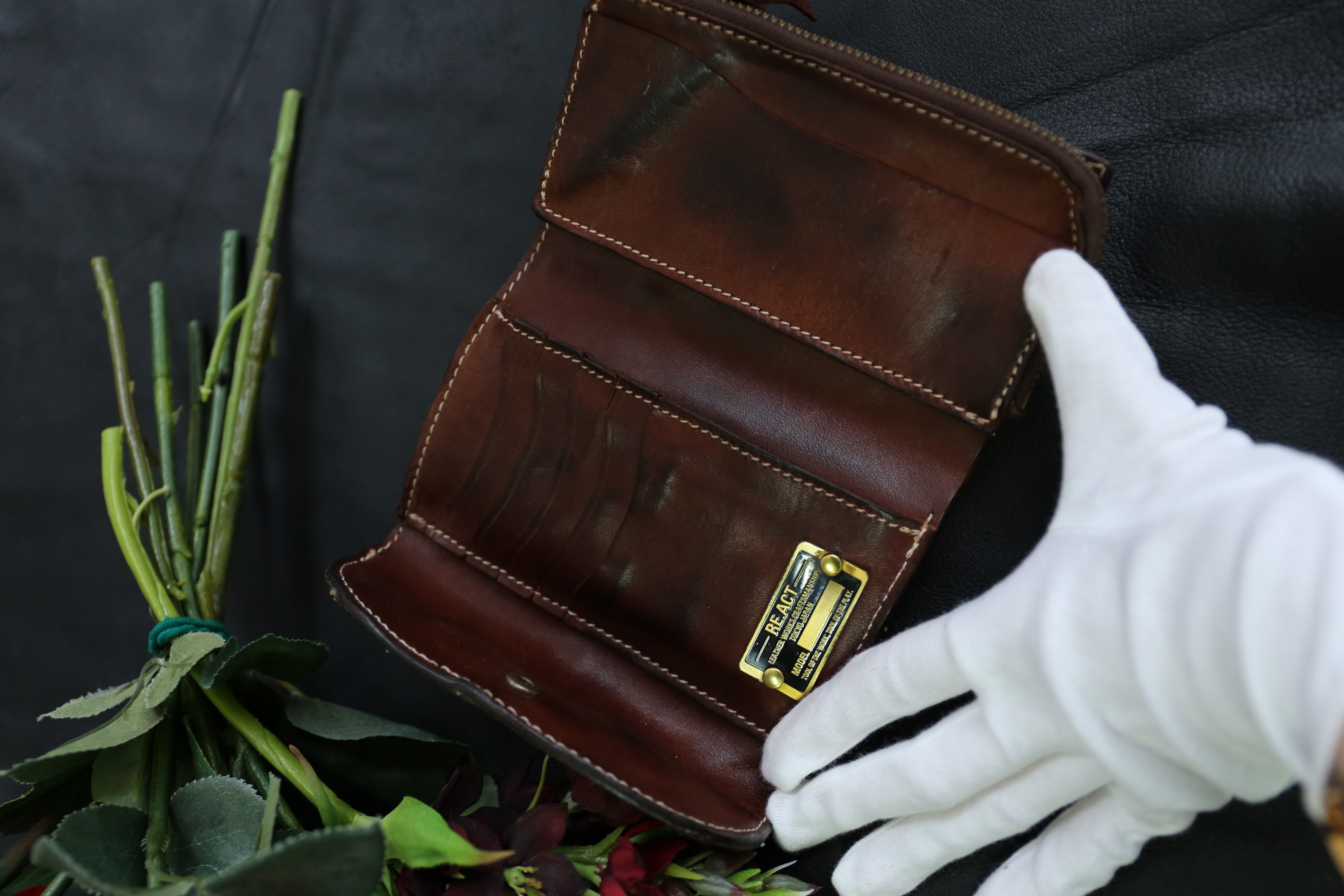 レザーをつぎはぎ状に再構築したお財布です。くっついている部分とついていないレザーの部分とであたりの出方が変わるので使っていくうちにも変わっていく表情を楽しんでいただけます。
