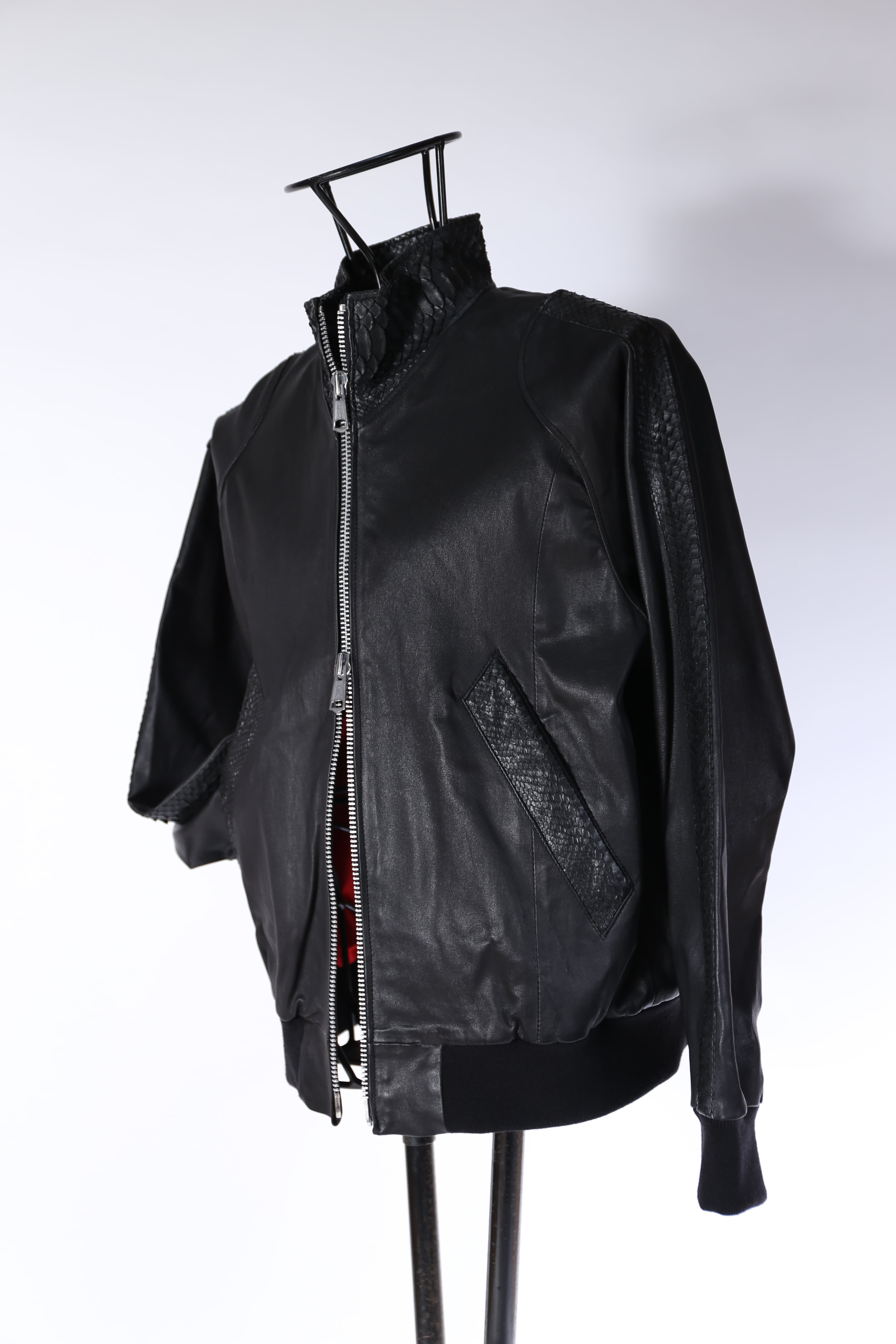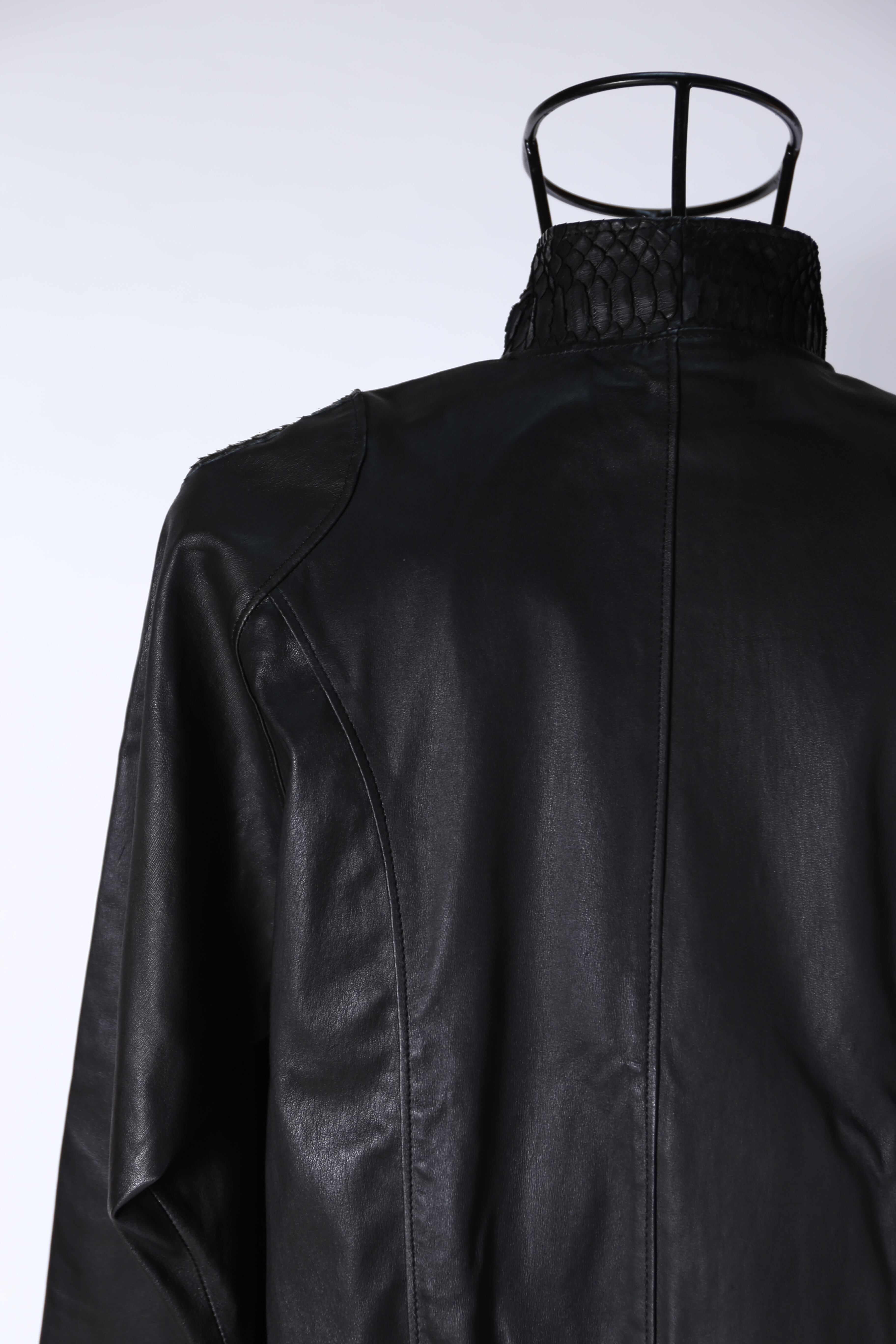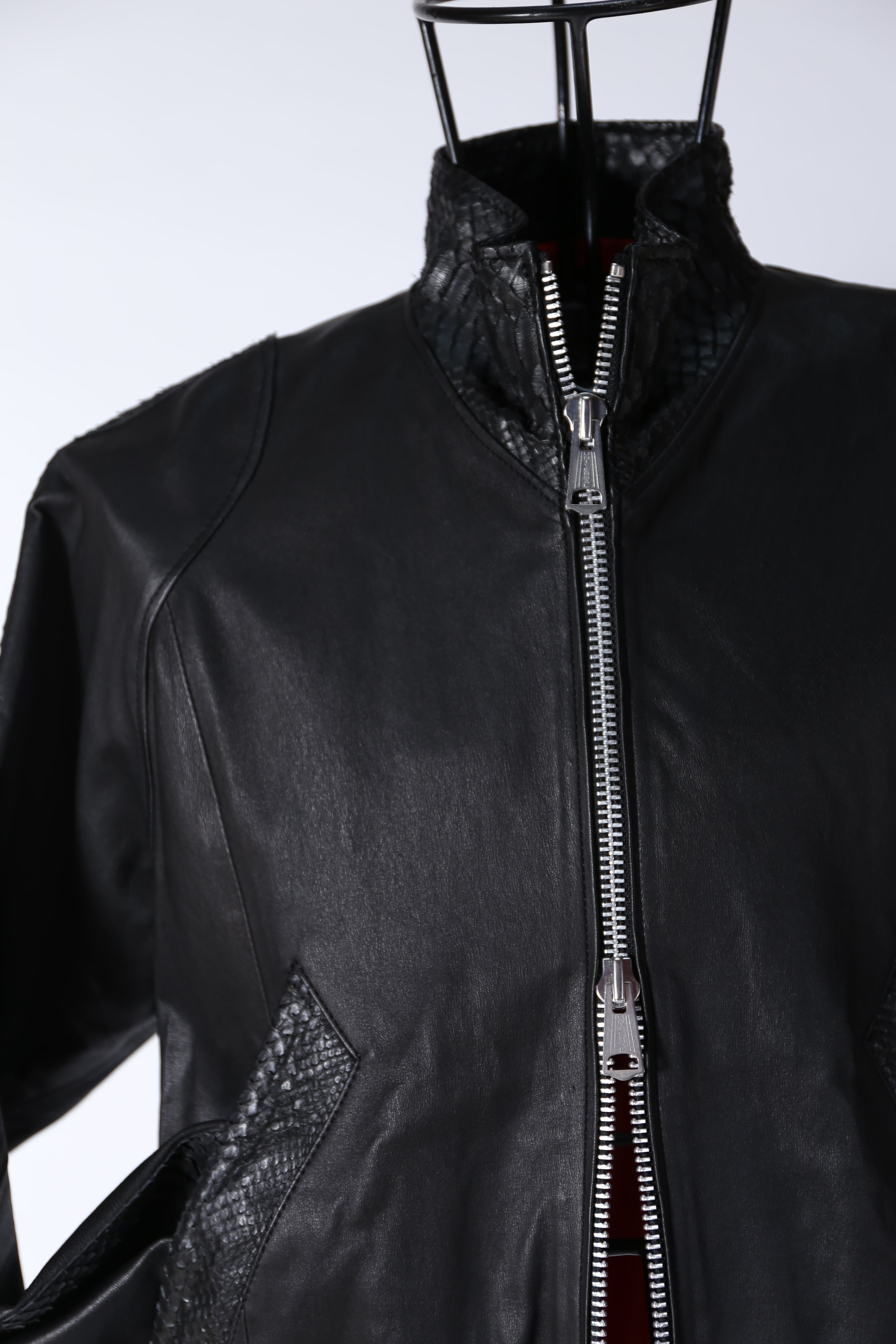 ネック部分にリアルパイソンレザーを使用しています。ダブルジップで丈夫なつくりになっています。本革なので使い込むうちに味が出る高級な一品です。