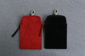 レザーのスエード面を使ったマルチケース。付けることができるフックがついているのでバックやベルトループなど様々なところに付けることができます。それぞれからが異なりますが、レッドだけ、制作する際につけられたと思われるまるい印がついています。こちらはあえて味としてお楽しみください。レザーのため使い込めば混むほど味が出てきます。レザー好きな方にはおすすめの逸品です。